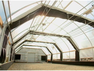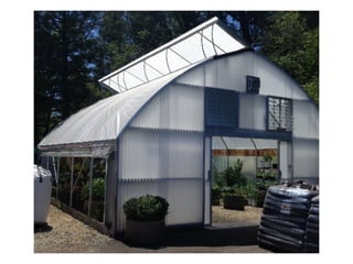 The document discusses the varying cannabis cultivation laws in Oregon, Washington, Colorado, and California, highlighting the shift from indoor to greenhouse operations due to cost efficiency and better management practices. Eric Brandstad provides insights into the benefits of greenhouse growing, including better temperature control and lower utility costs, while addressing challenges such as pest control and seasonal changes. It emphasizes the need for proper ventilation and the advantages of different greenhouse technologies for optimized cannabis production.