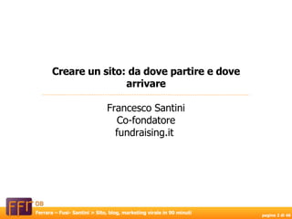 Il documento fornisce linee guida su come le organizzazioni nonprofit possono creare un sito web efficace, un blog e utilizzare strumenti di marketing virale. Sottolinea l'importanza di utilizzo di tecnologie open-source, contenuti personalizzati e relazioni genuine con i donatori per aumentare l'engagement e la visibilità online. Infine, esplora il valore dei social network e delle piattaforme di blogging nella costruzione di relazioni sostenibili con il pubblico e nel miglioramento della comunicazione interna ed esterna.