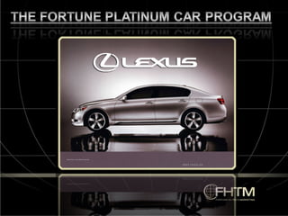 Fortune Hi-Tech Marketing is an international, financially stable company founded in 2001 that provides wireless, nutrition, and other products and services. Representatives can earn money by gathering loyal customers for these products and services through word-of-mouth advertising without inventory, employees, or a traditional business structure. The compensation plan offers bonuses and residual income potential as representatives build their business through multiple levels of their own representatives and their customers.