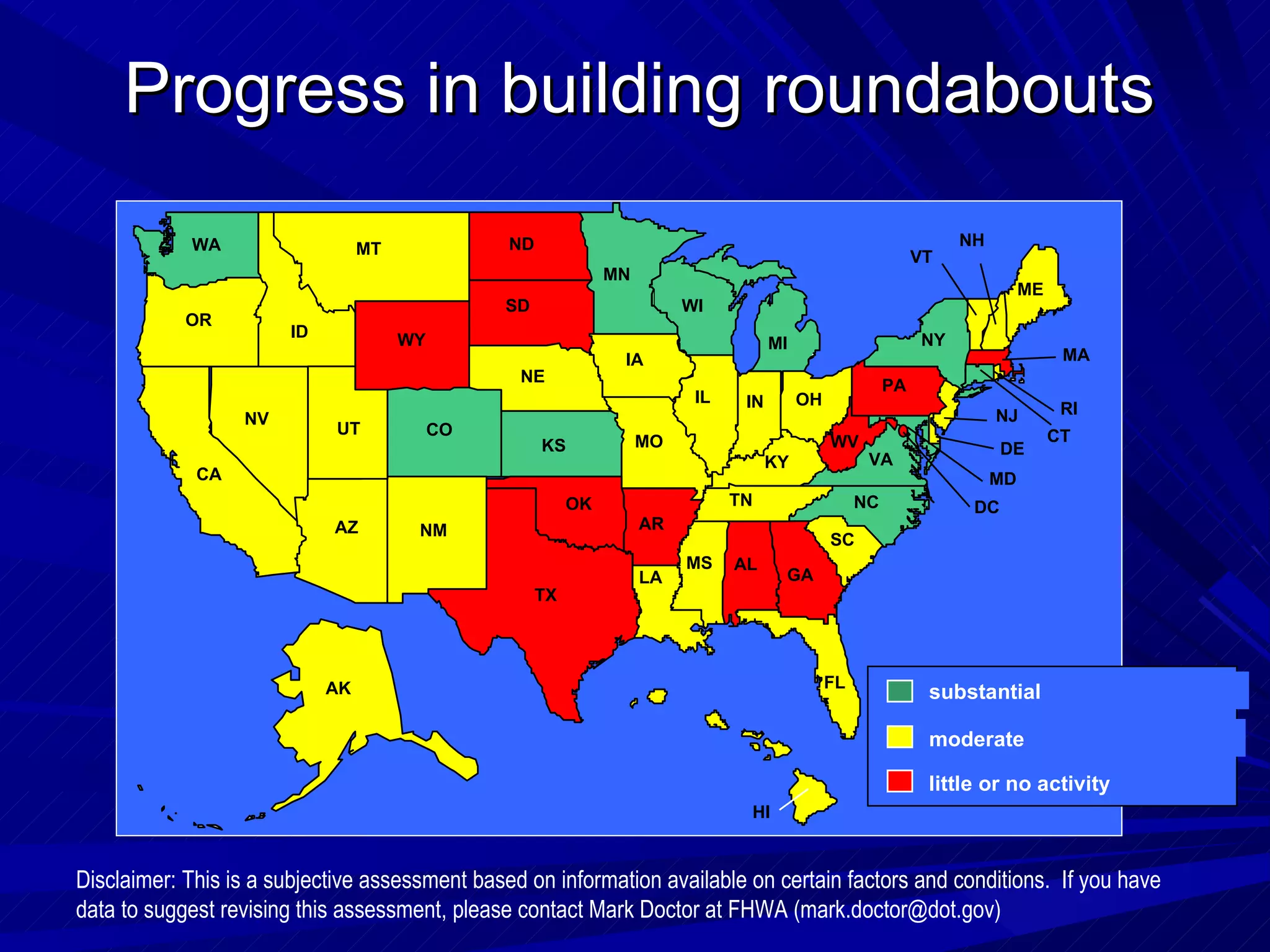 This document discusses roundabouts from the perspective of the Federal Highway Administration and dispels common myths about roundabouts. It summarizes that roundabouts have been shown to reduce crashes, especially serious injury crashes, compared to other intersection types. While initial construction costs may be comparable, the overall lifetime costs are typically lower due to reduced need for maintenance of signals. The document provides evidence that roundabouts are safe and efficient for all users, including pedestrians, bicyclists, and older drivers.
