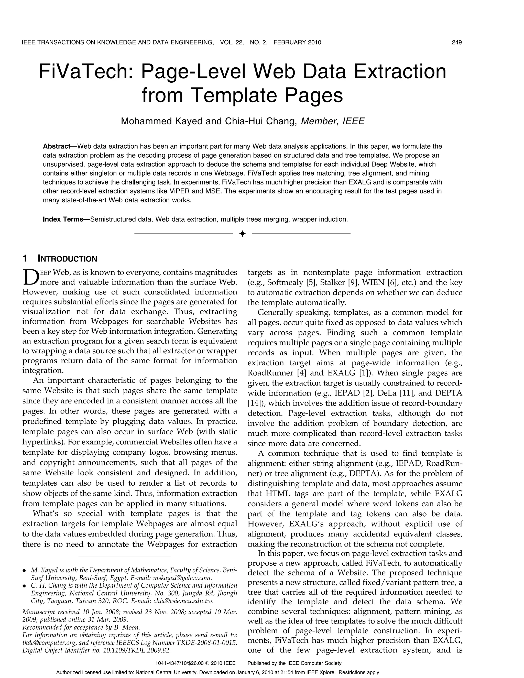 3) Experiments show FiVaTech has higher precision than EXALG, another page-level extraction system, and is comparable to record-level extraction systems like ViPER and MSE.