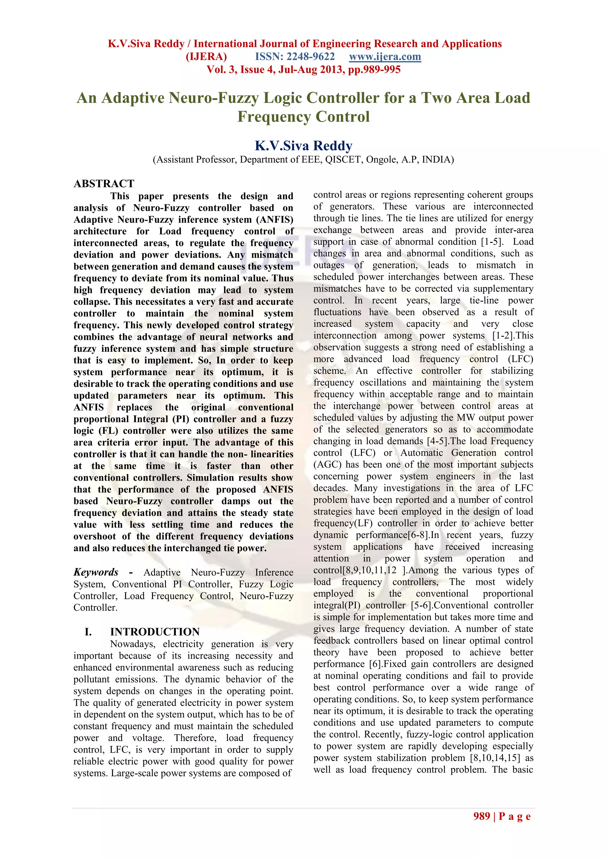 This paper presents the design of an Adaptive Neuro-Fuzzy Inference System (ANFIS) controller for load frequency control in interconnected power areas, addressing issues with conventional controllers. The proposed ANFIS controller outperforms traditional proportional-integral and fuzzy logic controllers by effectively handling frequency deviations with faster response times and reduced settling times. Simulation results demonstrate its superiority in maintaining system stability and optimizing control performance under varying conditions.