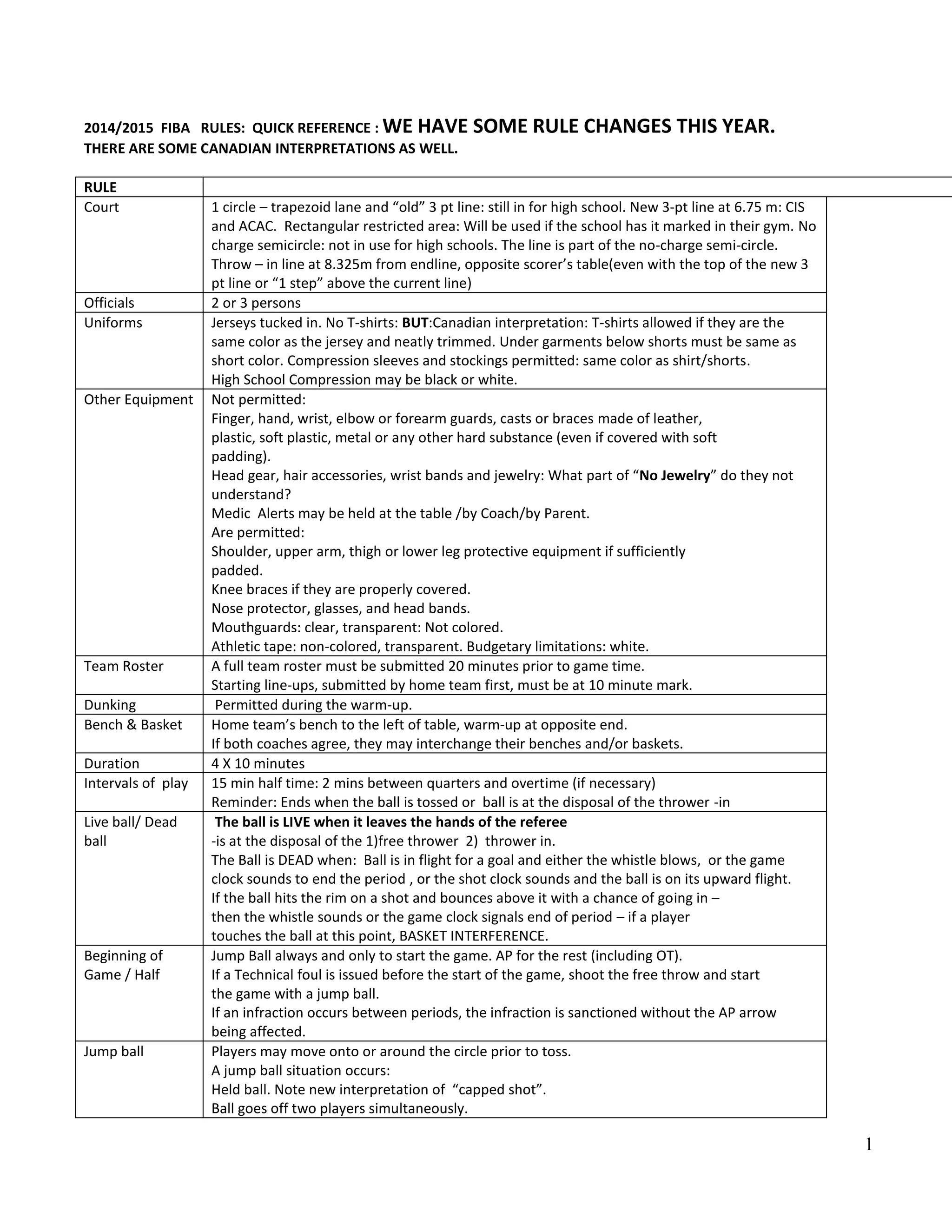 The document summarizes rule changes for the 2014/2015 FIBA season. Some key changes include: