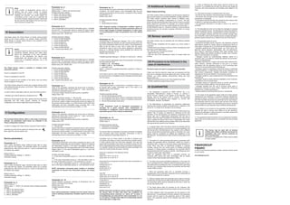 This document provides information about connecting and operating a universal binary sensor device according to the diagrams presented. It summarizes that the device can connect up to two binary sensors and four temperature sensors, and should not be loaded with currents exceeding 150mA. Wiring should be done specifically according to the diagrams to avoid hazards, as incorrect connections could lead to issues. The manual also provides background information on FIBARO wireless technology and how the bidirectional system uses repeating signals to ensure communication between all devices.