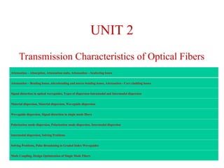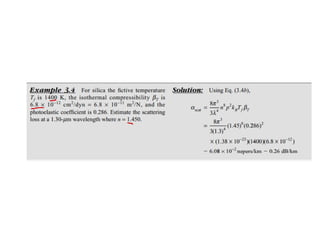 • The basic attenuation mechanisms in a fiber are absorption, scattering,