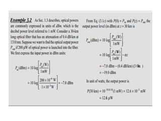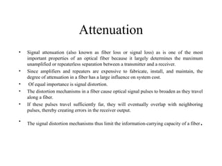 • Attenuation ofa light signal as it propagates along a fiber is an