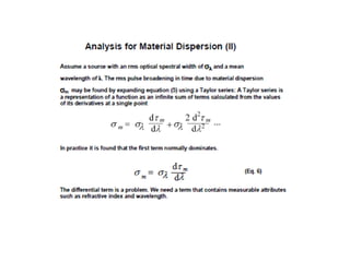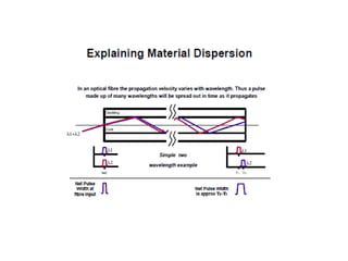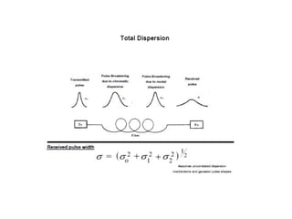 • The distortion mechanisms in a fiber cause optical signal pulses to broaden as they travel