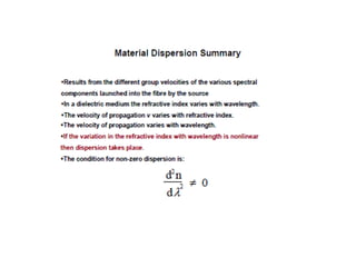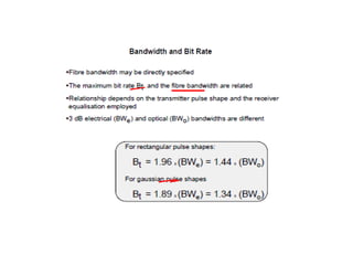 • The signal distortion mechanisms thus limit the information-carrying capacity of a fiber.