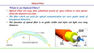 • Optical Fiber are long, thin cylindrical system of glass (silica) or clear plastic