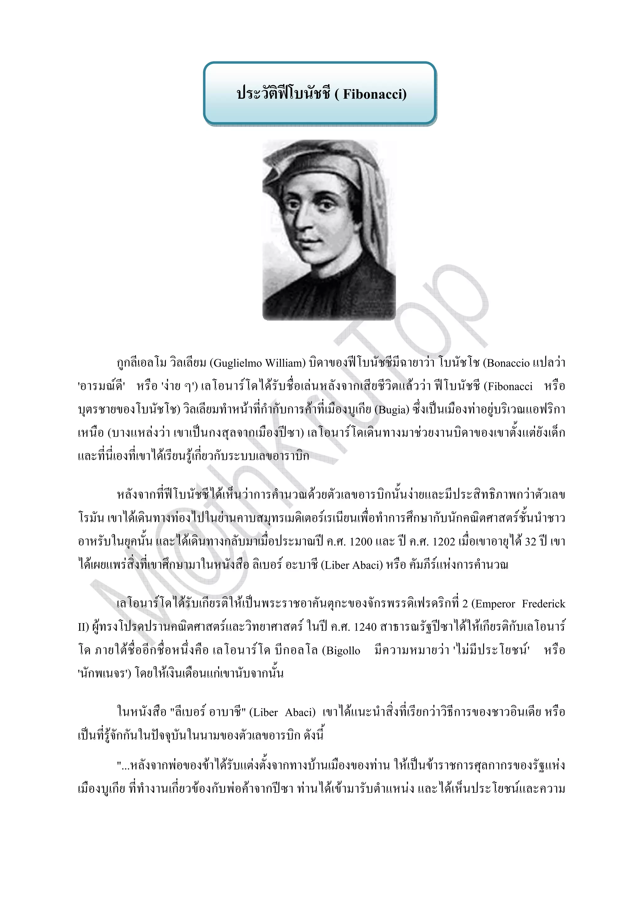 (Leonardo de Pisa) F กก (Fibonacci) F F F 13