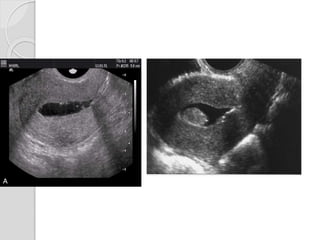This document discusses uterine fibroids and adenomyosis. Uterine fibroids are benign tumors of the myometrium that are common in women of reproductive age. They are responsive to hormones and often cause symptoms like menorrhagia, pain, and infertility. Adenomyosis is a condition where endometrial tissue is present in the myometrium, causing symptoms like menorrhagia and dysmenorrhea. Both conditions are evaluated using ultrasound, CT, and MRI. Ultrasound can detect fibroids and features suggestive of adenomyosis. MRI is best for diagnosing and characterizing adenomyosis by detecting thickening of the junctional zone. Treatment involves managing symptoms, while complications may include