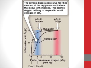 - Hemoglobin transports oxygen in red blood cells, while myoglobin stores and transports oxygen in muscle cells. Both contain a heme group that reversibly binds oxygen.