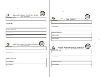 The document contains four identical sections that describe a library loan form for the Professional Development Unit of Tlaxcala. Each section lists fields for the user's name and signature, book title, classification number, loan date, and return date.