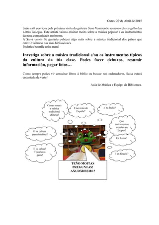 A Saisa tamén lle gustaría coñecer algo máis sobre a música tradicional dos países que