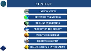 The document outlines a comprehensive study on the Gelama Merah oil field in offshore Sabah, Malaysia, focusing on reservoir engineering, drilling engineering, production technology, and project economics. The main goal is to generate a reliable Field Development Plan (FDP) report for management decision-making amid various challenges such as time constraints and limited data. The report includes detailed analysis on regional geology, petrophysics, reservoir management, and drilling strategies, along with results from reservoir simulations and production forecasts.