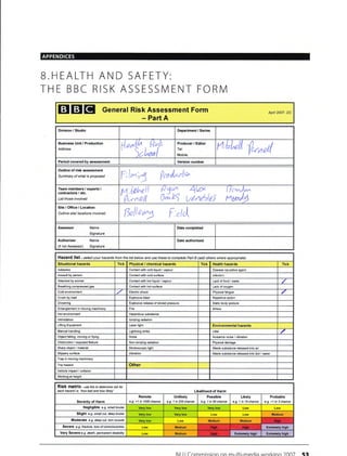 This document contains a risk assessment form used by the BBC. It includes: