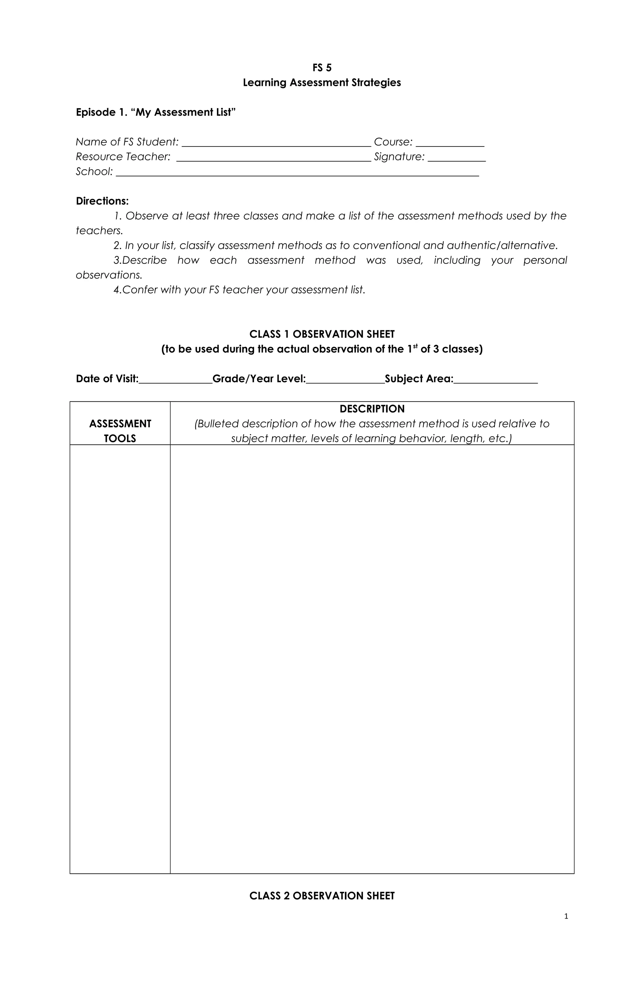 This document outlines a learning assessment strategy program for students. It provides direction for students to observe classroom assessments, develop their own assessment tools, and design performance and product-based assessment plans. The goal is for students to gain experience with various assessment methods and strategies. The program involves 5 episodes where students observe classes, interview teachers, develop tests and rubrics, and create assessment portfolios to demonstrate their understanding of assessment design.