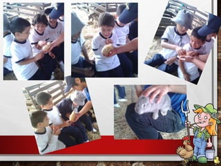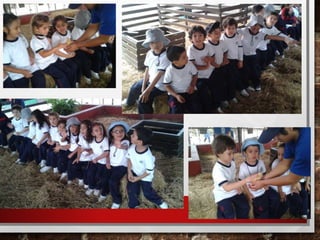 The document describes a school field trip to a farm where students were excited on the bus ride there. At the farm, they saw ducklings and rabbits, fed chickens and ducks, made bread, milked a cow, and went for a ride. By the end of the day, most students were tired from the activities, though some still had energy despite the full schedule of farm experiences.