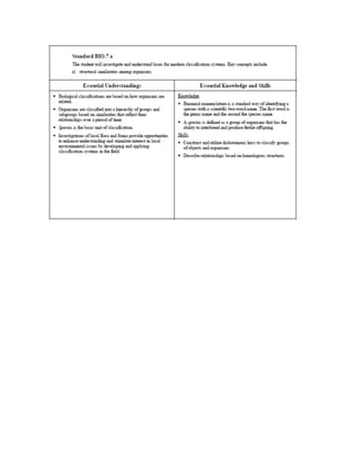 This document outlines a field trip unit plan for a 45 minute lesson and 30 minute lab on echinoderms and comparing invertebrates. The lesson will introduce students to echinoderm anatomy and life functions, different echinoderm classes, and their ecology. Students will compare the life functions of various invertebrates. The lab involves students measuring abiotic factors in a stream and observing aquatic invertebrates. The plan aims to meet various science standards and cognitive objectives for students to recognize structural and metabolic similarities among organisms, examine biodiversity, and participate in discussions.