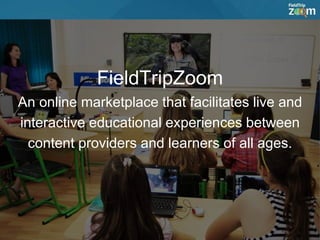 FieldTripZoom is an online marketplace offering interactive educational experiences between expert content providers and learners. It features a variety of programs from museums, zoos, and other institutions to enhance educational access and supports scheduling, funding, and videoconferencing technologies. The platform aims to eliminate barriers for accessing unique educational content by providing blended learning opportunities and ease of use for educators and students.