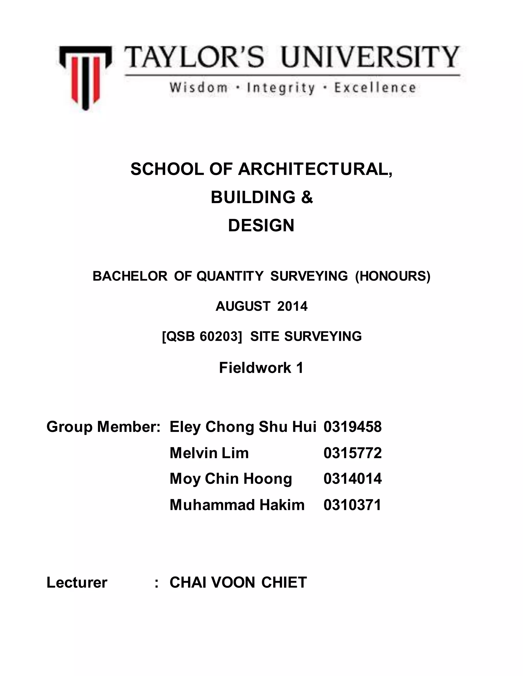 This document summarizes a student group's fieldwork using an auto level to collect elevation data at 11 points. The objectives of the fieldwork were to gain experience using surveying equipment and understanding the surveying process. The group recorded raw elevation data using two different methods and then adjusted the values to distribute errors under the allowable threshold of 39mm. The summary concludes that the fieldwork was successfully completed with an obtained error of only 33mm, within the acceptable range.