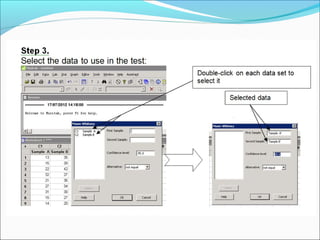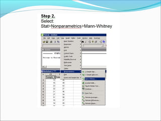 The document describes using various statistical analyses to compare environmental quality scores between two locations, Quinton and Ladywood. Central tendency measures including mean and median showed Quinton's average scores were positive while Ladywood's were negative. The inter-quartile range analysis revealed Ladywood's upper quartile was below Quinton's lower quartile, indicating a significant difference. A Mann-Whitney U test confirmed with over 99.9% confidence that Quinton's environmental quality scores were significantly higher than Ladywood's.