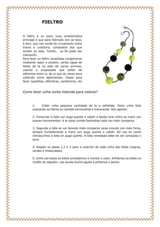 5. Unha vez secas as bólas procedemos a montar o colar. Enfilamos as bólas no