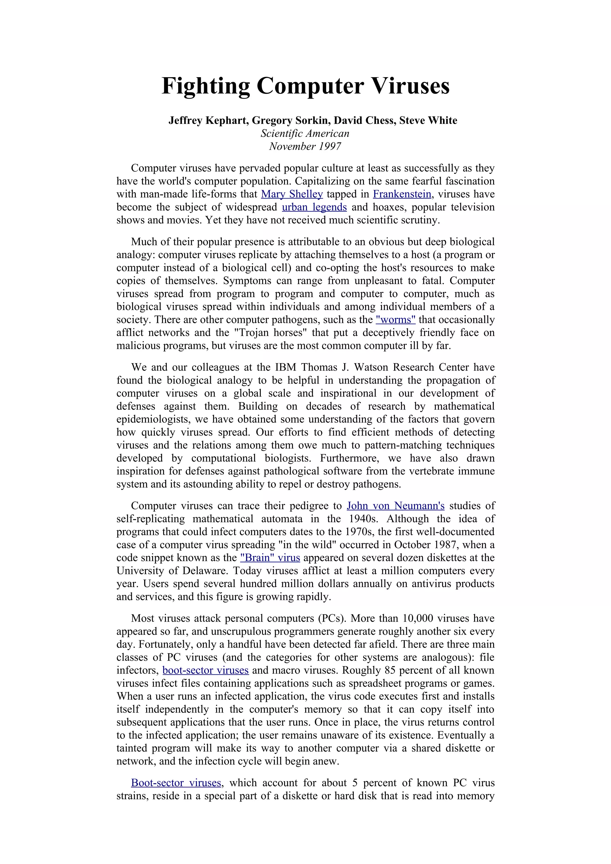 - Computer viruses spread through programs and computers much like biological viruses spread through individuals. Researchers have used biological analogies to understand how computer viruses propagate on a global scale and develop defenses against them.