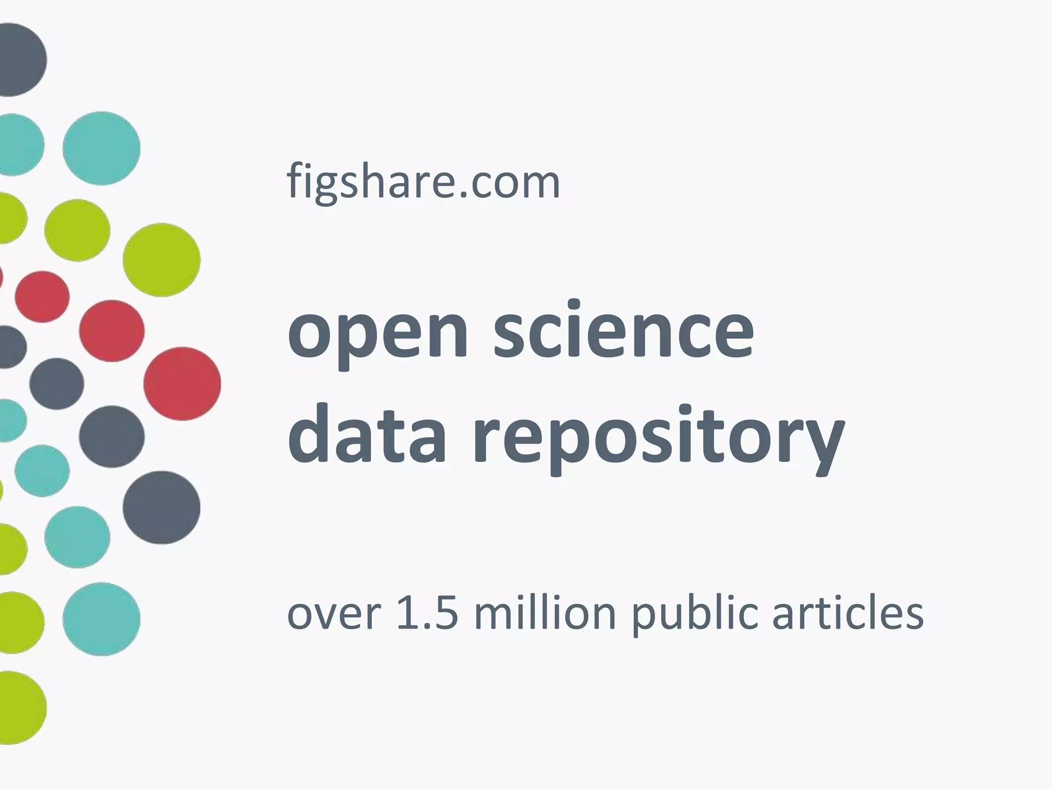 Figshare is an open data repository that allows researchers to publish all of their research data online for public access within minutes. This speeds up the publishing process compared to traditional journals, which can take years and only share a small portion of the data. Figshare aims to improve collaboration and reproducibility of research by making all data citable and discoverable. It has over 1.5 million public research articles and is used by many universities worldwide to help students and researchers more easily access and share data.