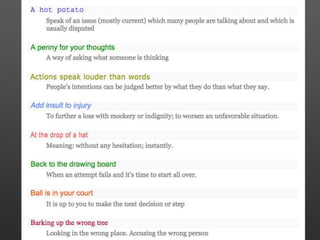 The document defines and provides examples of different types of figurative language, including metaphor, simile, personification, allusion, pun, oxymoron, hyperbole, idiom, and cliché. It analyzes the nursery rhyme "Hey Diddle Diddle" and identifies the figurative language devices used.
