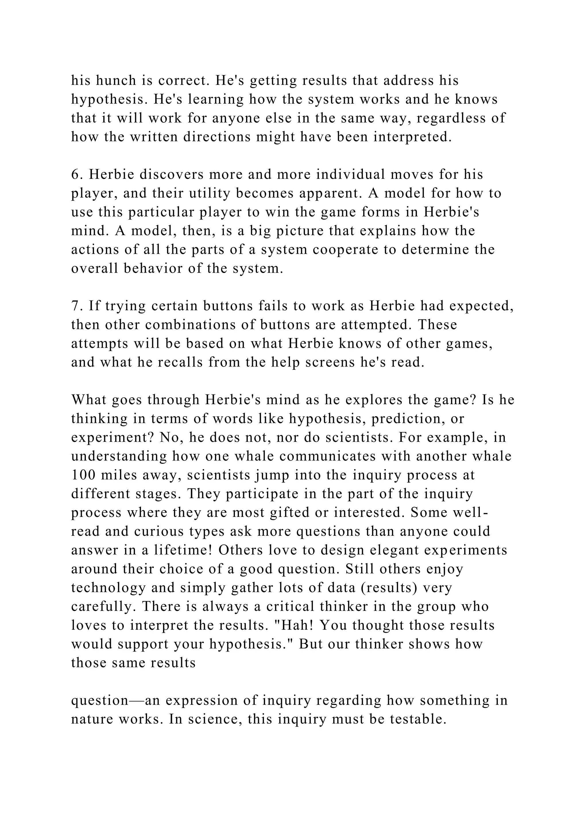 The document outlines the scientific inquiry process, illustrating how hypotheses are formed, tested, and potentially evolve into widely accepted theories through experimentation and interpretation of results. It emphasizes that science is a dynamic, non-linear process and describes the roles of variables, control conditions, and experimental conditions in research. Additionally, it discusses specific examples of scientific studies, demonstrating how controlled experiments can lead to meaningful conclusions about complex phenomena.