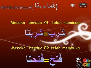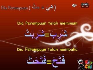 Dokumen ini menyajikan presentasi mengenai penggunaan kata ganti dalam bahasa, khususnya dalam konteks pemakaian untuk laki-laki dan perempuan. Penggunaan kata ganti tersebut mencakup berbagai bentuk dan situasi, baik untuk subjek tunggal maupun jamak. Penyampaian informasi dilakukan dengan sistematis dan menunjukkan perbedaan antara penggunaan kata ganti berdasarkan gender dan jumlah.
