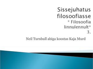 Filosoofia eelsed kultuurid– iidne maagia (mimees ja kognitoos) Ca 700 e.Kr. Türgi territooriumil tekib uudne huvi maailma vastu, asjade tõelise olemuse küsimus Metafüüsika algus Esimeste kreeka filosoofide küsimused olulised ka tänapäeval – läänemaailma pärand. Samaaegne filosoofiline mõtteviis Idas – Pärsias, Indias, Hiinas