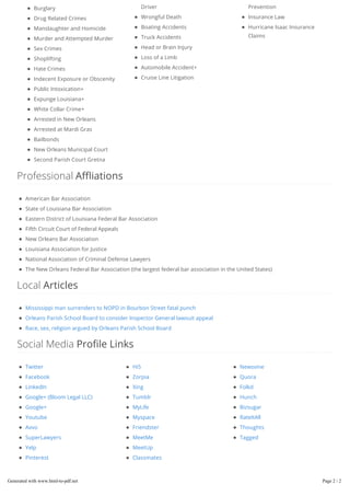 Seth Bloom is the founder of Bloom Legal LLC, a law firm in New Orleans since 2004, specializing in criminal defense and personal injury law. The firm provides services for various legal issues, including DWI, drug crimes, personal injury, and property law. Seth Bloom aims to deliver quality legal services to clients locally and those visiting New Orleans.