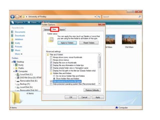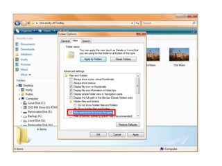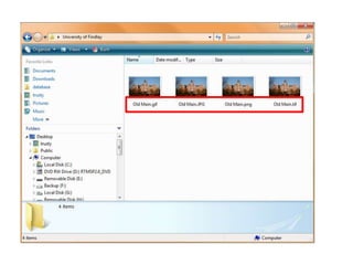 This document discusses file extensions and categories. It notes that Windows has file extensions turned off by default. It also mentions Anna Kournikova.JPG, Anna Kournikova.JPG.VBS, and the ALT key without providing further context about them. The document lists several categories of common file extensions such as Document/Web Page, Spreadsheet, Database, Picture/Graphic/Presentation, Audio/Video, Compression/Archive, Program/Script, and System/Help.