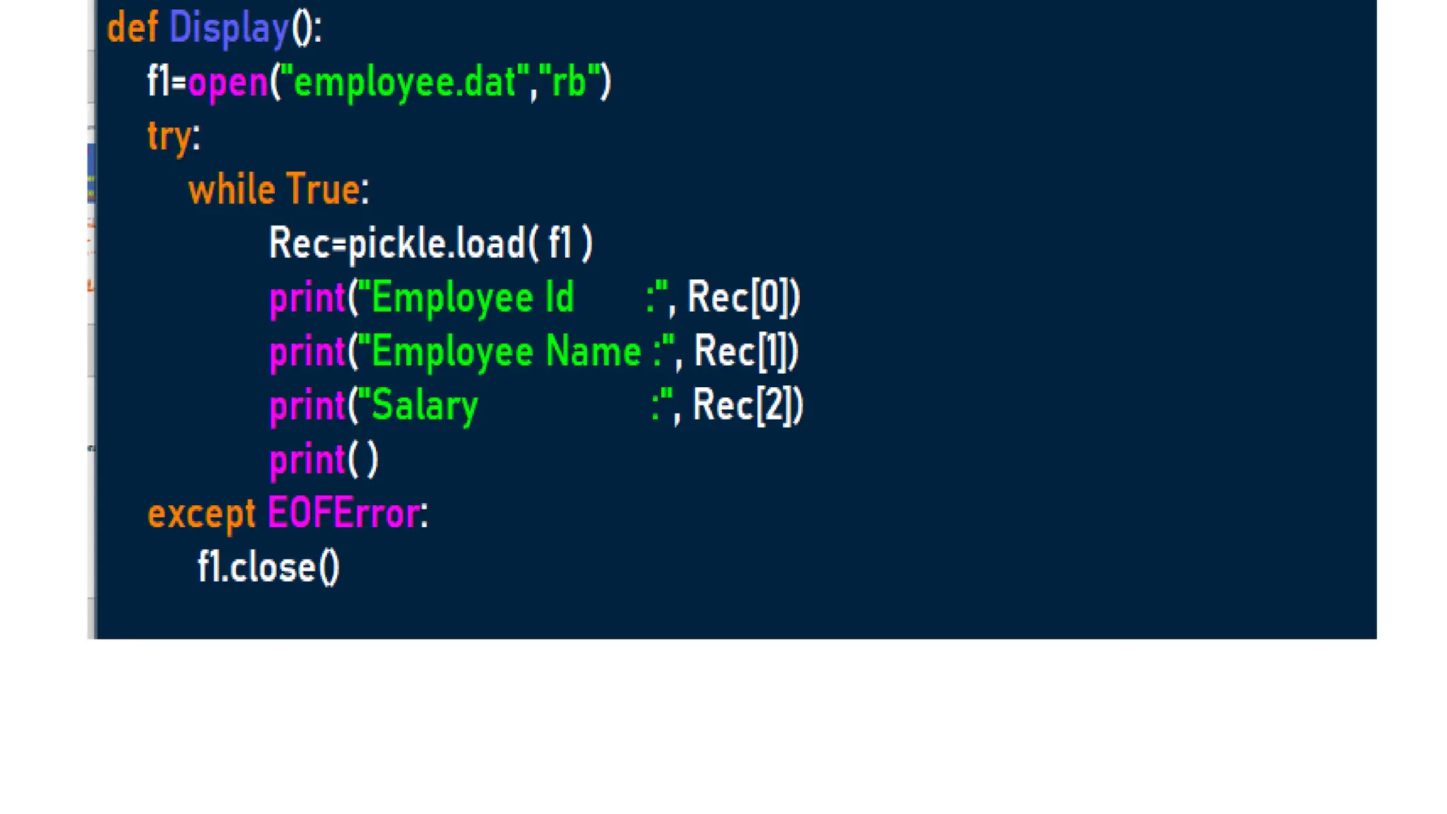 Load( ) -It is used to read an object( list or dictionary or tuple…) from a binary