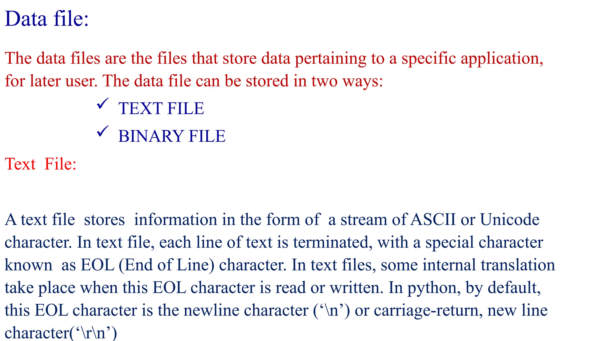 i) Regular Text fie: These are the text files which store the text in the same form as typed. Here the new line character(‘n’)