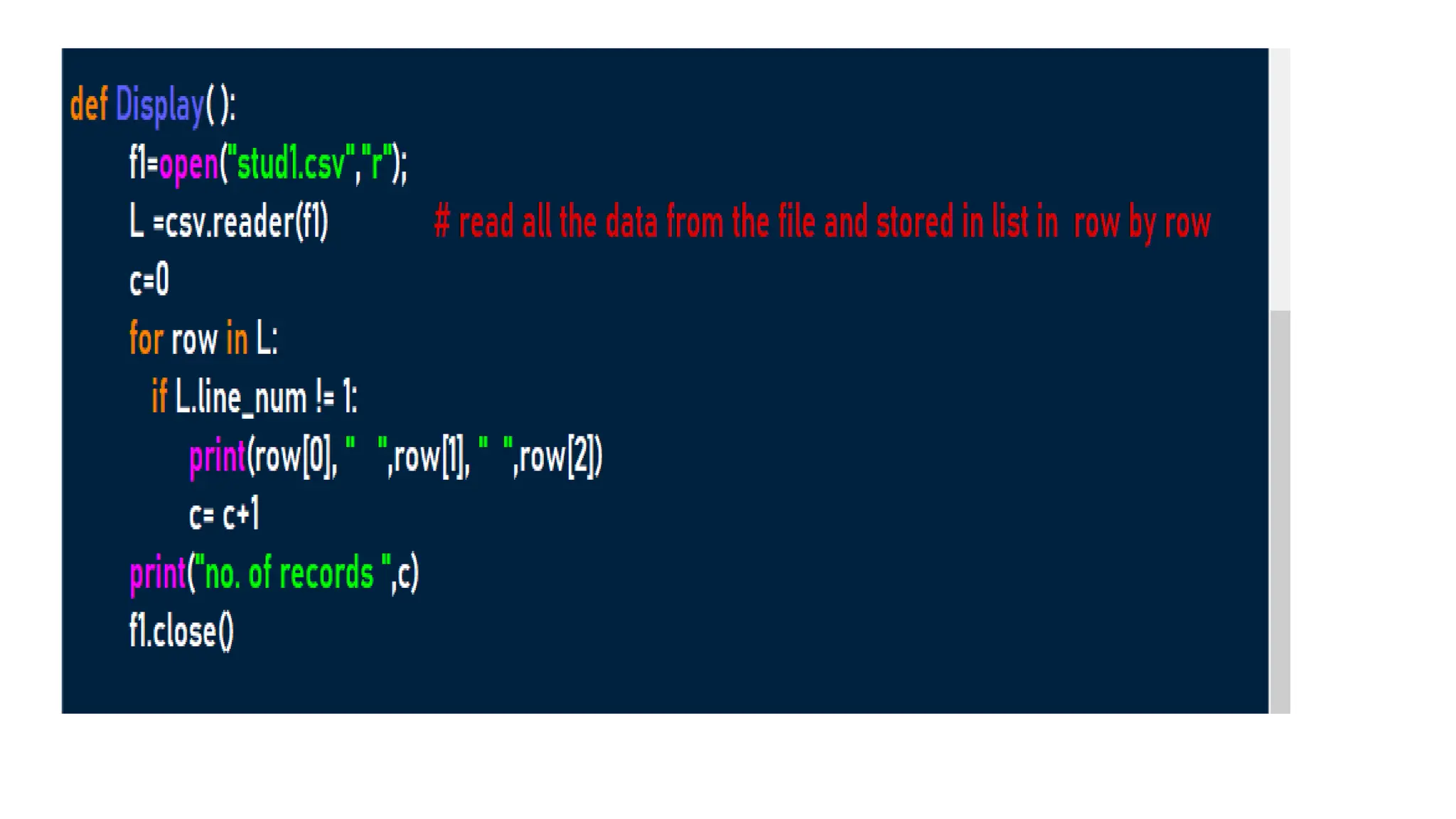 List= cse.reader(filehandle [, delimiter=‘ delimiter character])