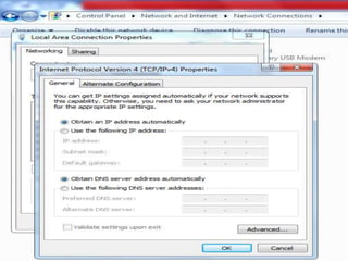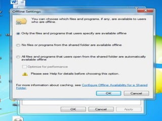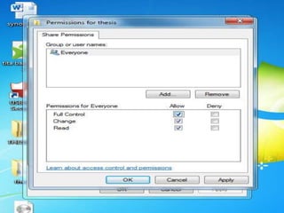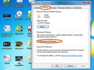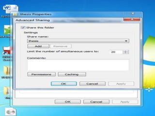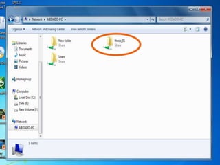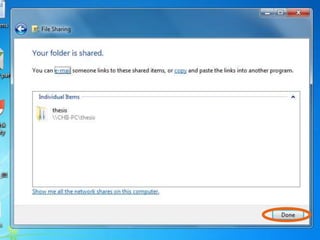 1. The document provides steps to share a folder between two computers connected via Ethernet cable.