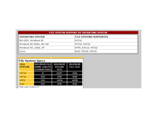 The document discusses file systems and storage management. It covers key concepts like file structure, file attributes, file operations, open files, file locking, access methods including sequential and direct access, and directory operations and design including single-level, two-level, tree-structured, and acyclic graph directories. The goal of directory design is to provide efficiency in locating files, allow convenient naming of files to avoid collisions, and enable logical grouping of files.