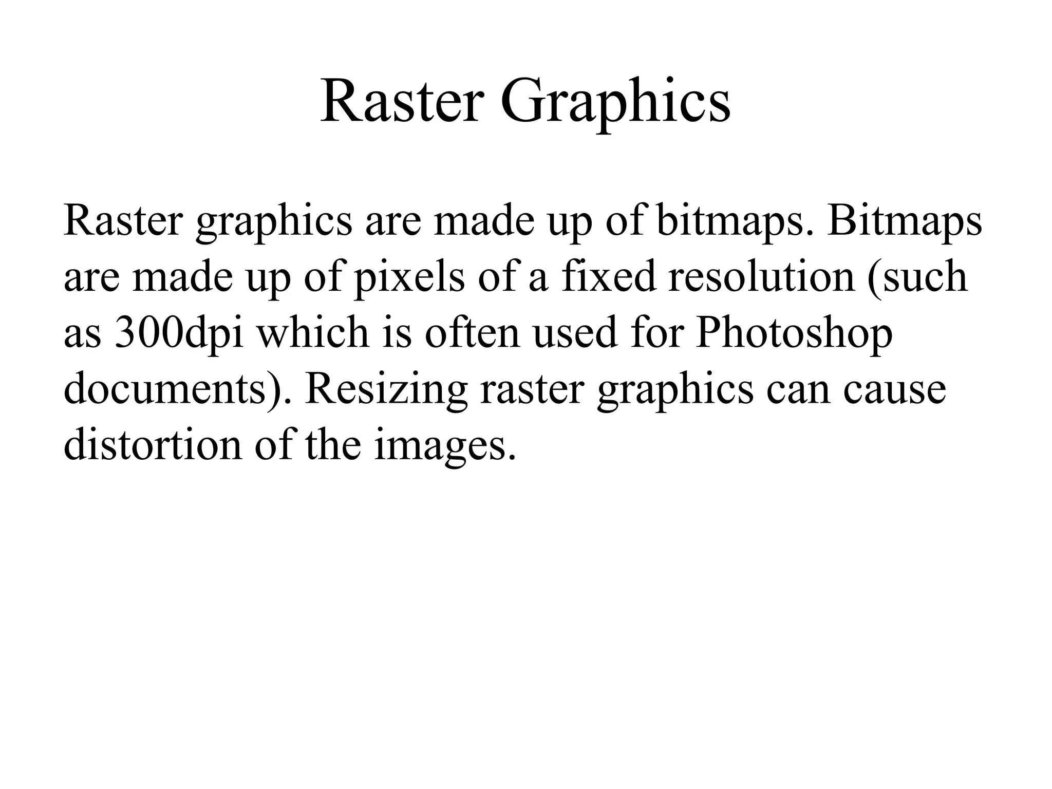 The document discusses various digital graphics file formats, distinguishing between raster and vector graphics. It covers different file types such as JPEG, TIFF, GIF, BMP, PSD, AI, FLA, and WMF, highlighting their advantages and disadvantages regarding quality, file size, and compatibility. Additionally, it addresses image capture methods, compression techniques, and the importance of optimizing images for web use.