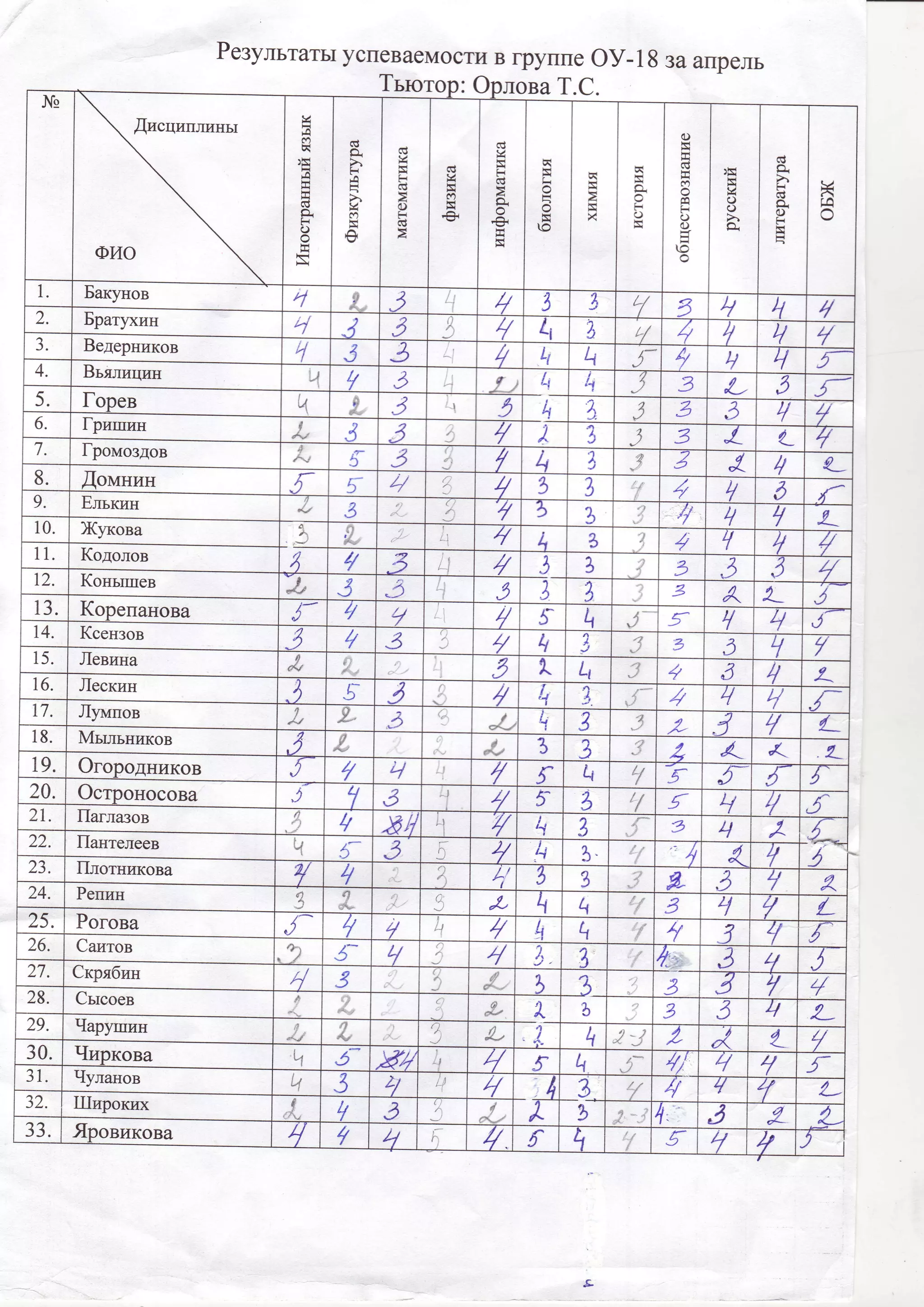 э 3 3 E12. Кoньrrшев J, 3 э l..i 3 у 3 З A 2_ J13. Кopепaнoвa 4- t7