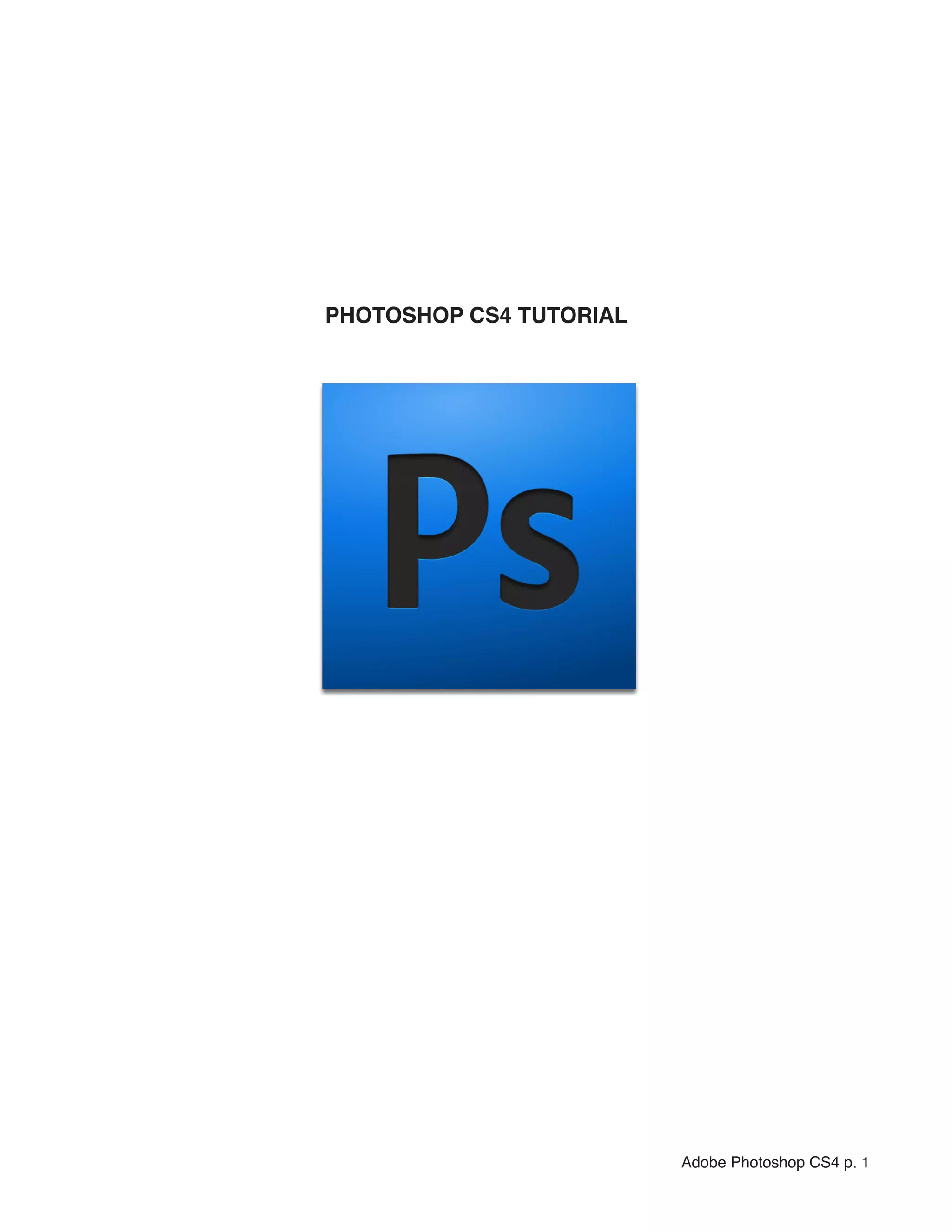 This document provides an overview of the Adobe Photoshop CS4 tutorial. It introduces the software and gives an outline of the tutorial sections, which cover getting started, using the interface and palettes, tools, and basic image editing techniques like cropping, resizing, and corrections. The document also provides examples of the interface layout and describes commonly used palettes like Layers, Adjustments, Colors, and History. It explains how to use layers and the benefits of working with multiple layers to control images.