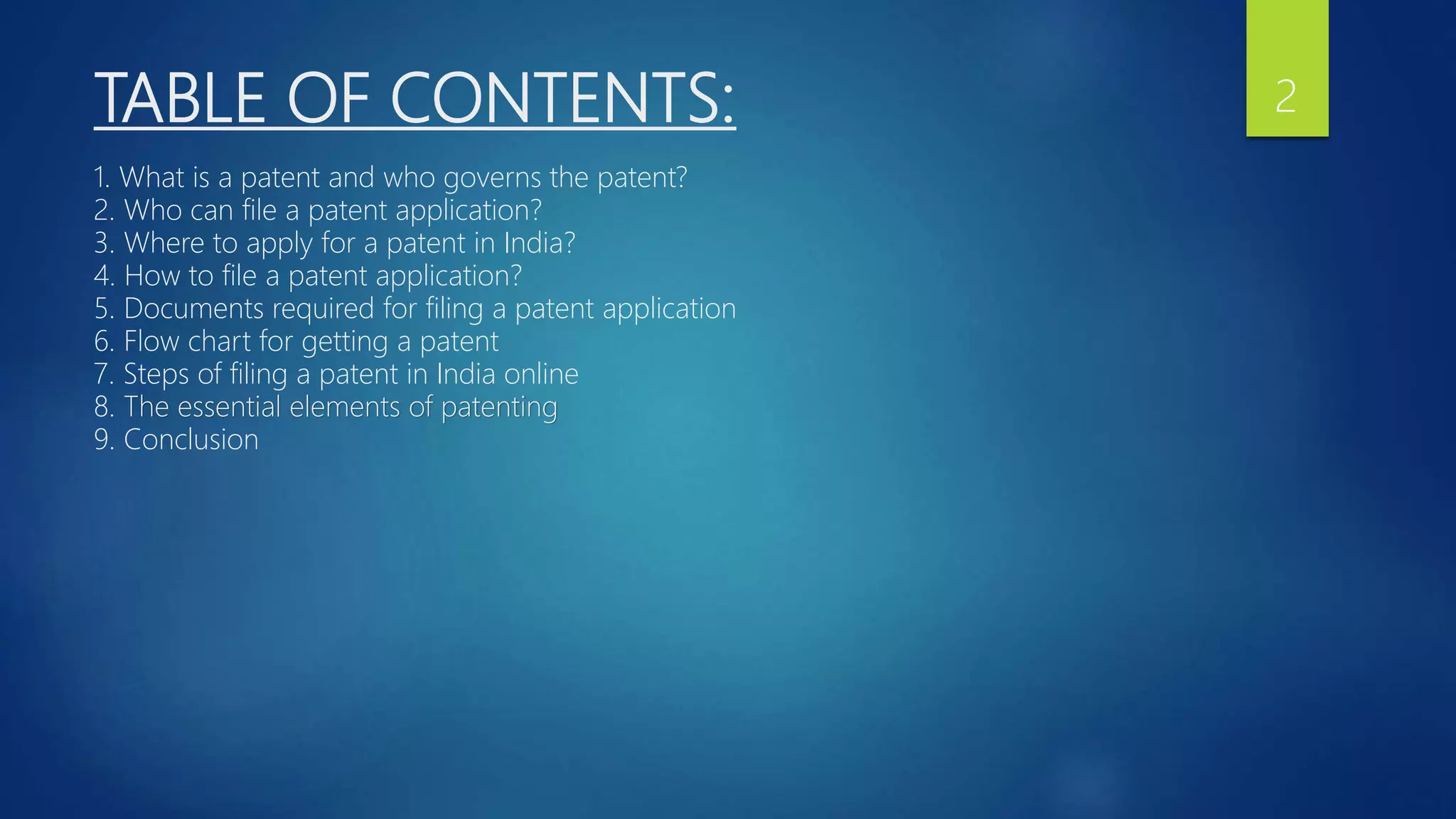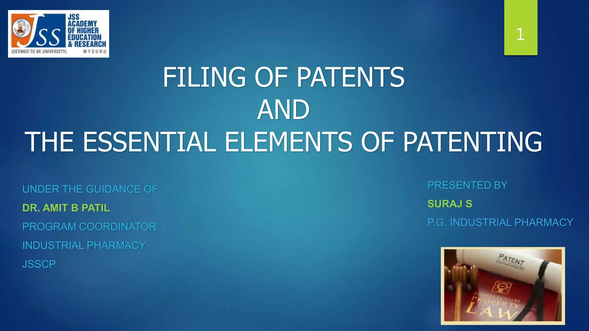 The document provides a comprehensive overview of the patenting process in India, detailing the definition of a patent, who governs it, and who can file applications. It outlines the steps involved in filing a patent application, including required documents, the flow of the application process, and conditions for grant. The essential elements of patenting are also discussed, emphasizing the importance of proper documentation, claims, and the rights conferred by a granted patent.