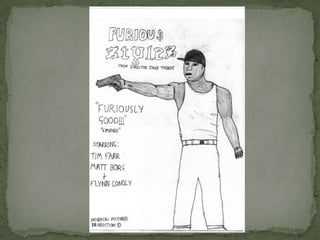 There are 5 common conventions for film posters: one-word title, slogan, credits, actor images, and relationships between actors. Film posters are displayed in cinemas, magazines, billboards, and shops to advertise films and get people's attention. Posters use eye-catching titles, attractive images, intriguing slogans, and prominent actor names to appeal to a wide audience and encourage viewers to watch the film. The documentary outlines the equipment and locations used to plan and produce film posters, including a still shot camera, computers, and a photography area.