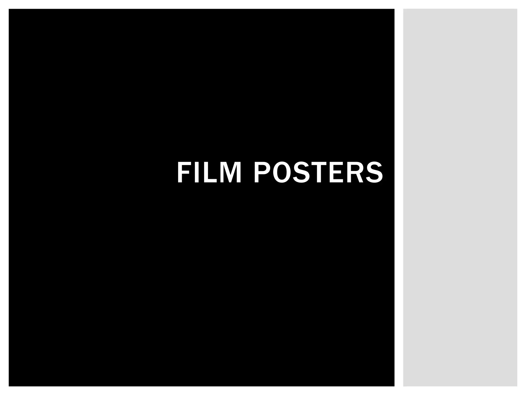 This document summarizes several horror film posters. For Friday the 13th, the lighting creates tension and fear, the title is in red suggesting danger, and the villain wears a mask and holds a machete. For Scream, the black and white color scheme makes it seem dark and scary, and the close-up of a terrified girl's eyes uses light and color contrast. Insidious advertises its producers of popular horror films and features a drained image of a boy in pajamas with "insidious" in his eye. Paranormal Activity emphasizes its basis on a true story by showing footage from a home camera. The Woman in Black only mentions actor Daniel Radcliffe to attract fans and uses a dark