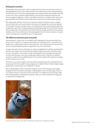 Photographers must understand key differences between shooting digitally versus on film. With digital, images are recorded as numbers by silicon chips rather than on silver-halide film. Raw files contain the most image data but must be processed, while JPEGs apply in-camera settings during 8-bit compression, permanently losing data. To fully master digital, photographers need to understand pixel behavior compared to film grain, the impact of bit depth on image quality, and benefits of shooting in raw format to retain the most image data flexibility.