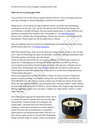 optisk lins. Vi förknippar på ett självklart sätt filmen med bilder som RÖR sig. Movere,
