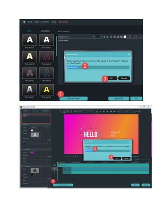 Filmora is an all-in-one video editing software with a simple interface. It has both an easy mode for creating videos with themes and an advanced mode for fully customized editing. The document discusses how to import media, perform basic editing functions like trimming and splitting clips, and navigate Filmora's interface. Key points include importing video, images, and audio, recording directly in Filmora, filtering and sorting media, performing edits like rotations and crops, and joining multiple videos together.