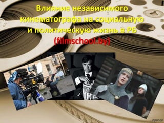 Документ описывает влияние независимого кинематографа на социальную и политическую жизнь в Беларуси через создание Минской киношколы в 2009 году и ее развитие в последующие годы. Включены мероприятия по обучению актеров, режиссеров и сценаристов, а также прокат и участие независимого кино в фестивалях. К 2015 году была основана полноценная киностудия для создания независимого кино на социальные темы.